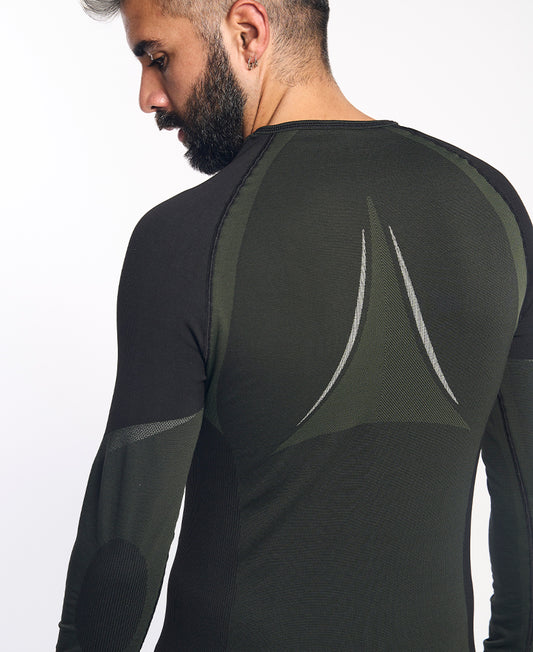 Tee-shirt manches longues double couche NORTH noir et kaki