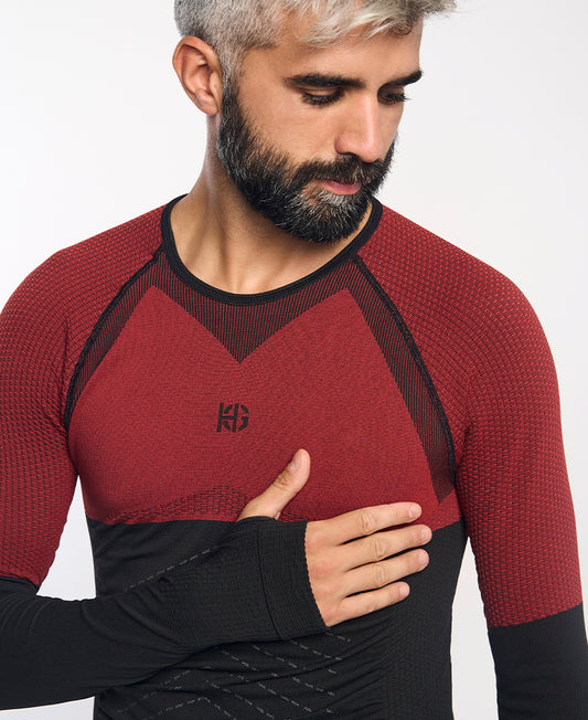 Tee-shirt manches longues homme ANDOYA Carbon noir et rouge